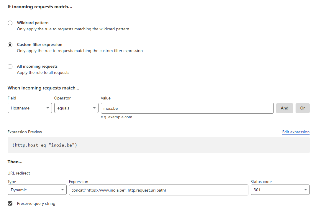 Créer une redirection permanente (301) pour la racine (naked domain)