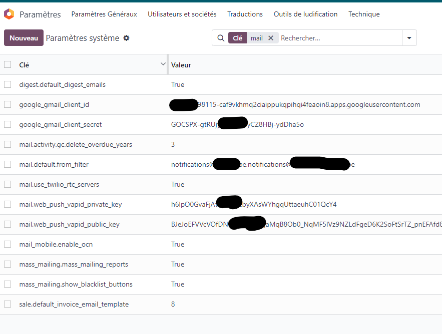 - Go to Settings>Technical>System parameters→ filter by "mail" and modify the following parameter: